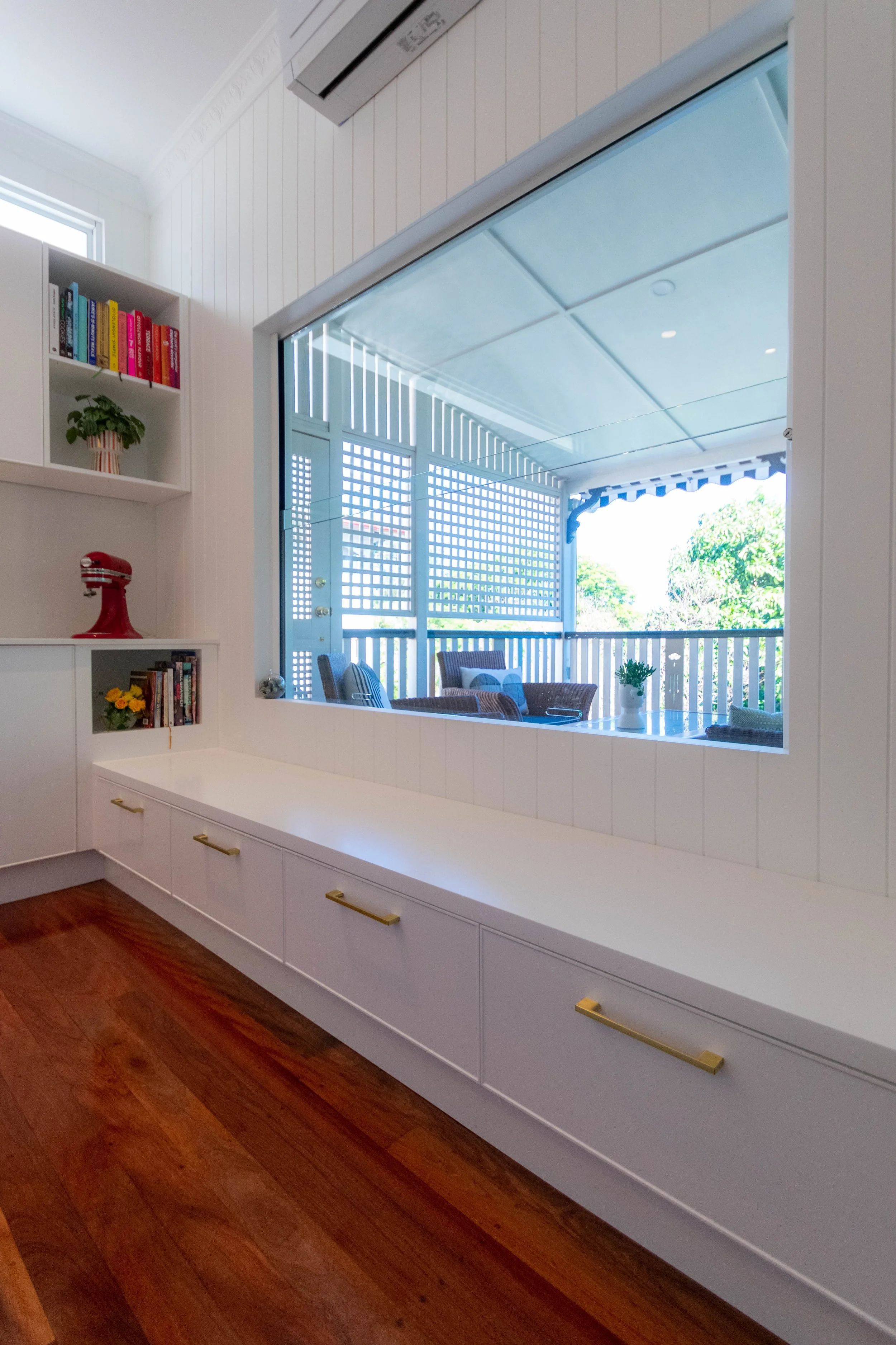 This was an upstairs bathroom renovation, a new kitchen incorporating the big new sashless window, newly renovated bathroom downstairs, renovated laundry, new downstairs kitchen. All internal floors were re-sanded. All new tiles on the bottom floor.