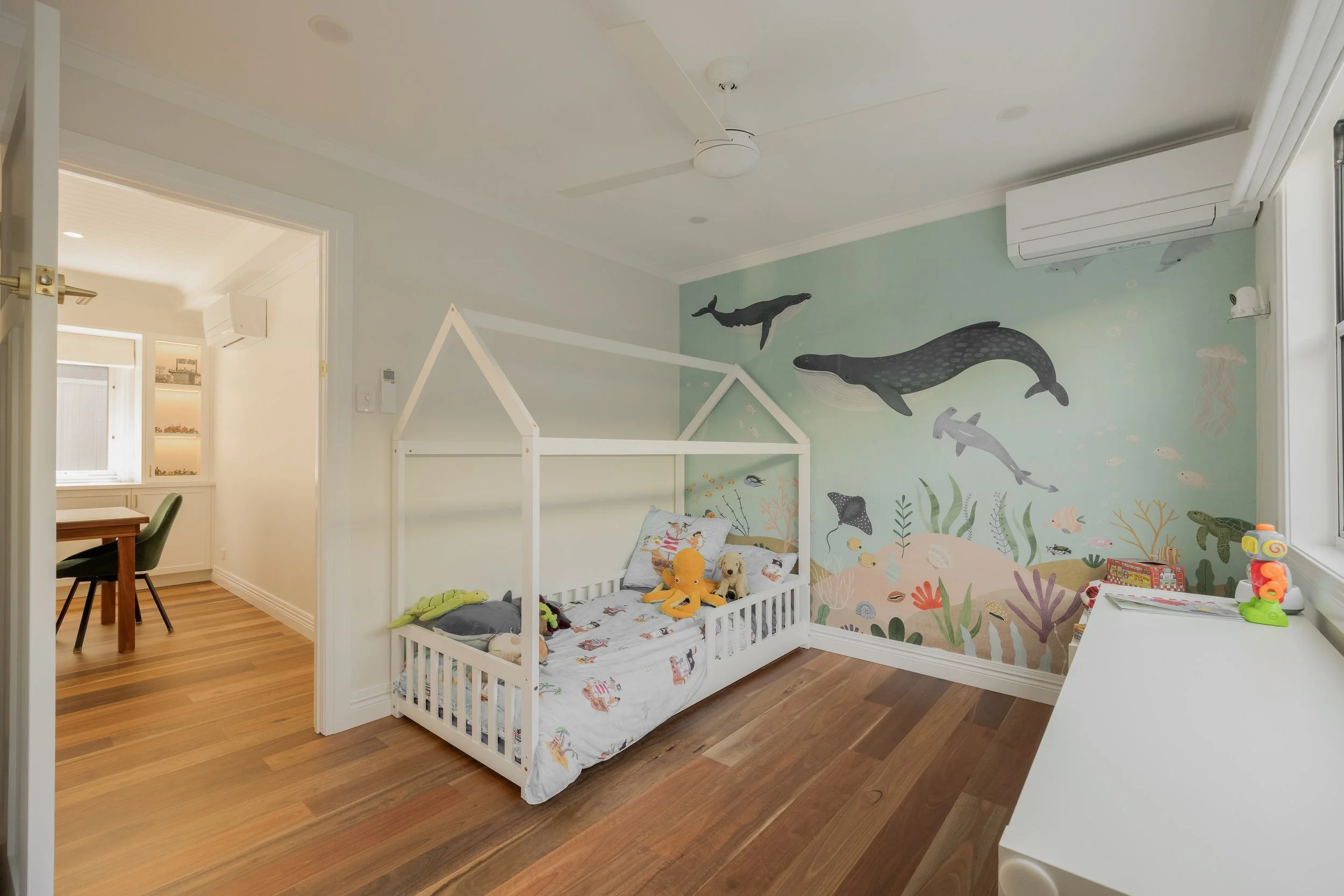 The addition includes three new bedrooms, a dedicated study, laundry, open dining area, custom family games room, full bathroom, and a generous master suite — delivering everything a growing family needs, all while honouring the character of the original home.